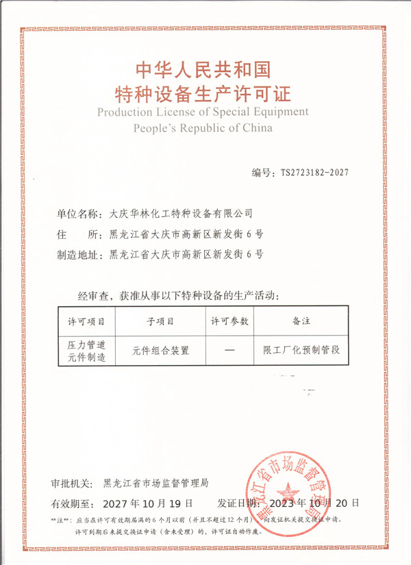中華人民共和國特種設(shè)備生產(chǎn)許可證